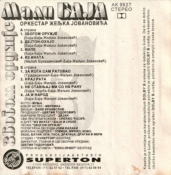 j-card back of first issue zbogom oružje